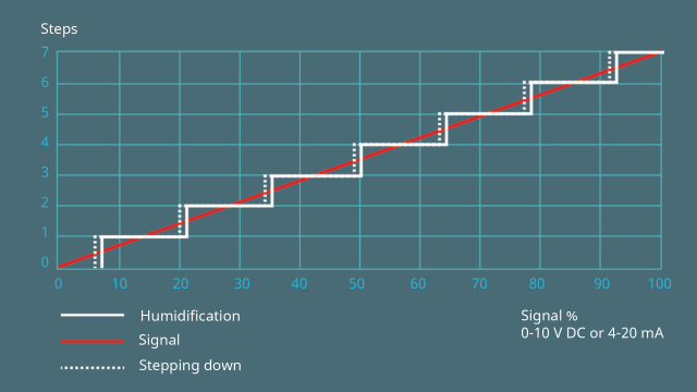 Järjestelmän ohjausyksikön avulla varmistetaan, että suihkutussuuttimet aktivoituvat portaittain, jolloin vedensyöttöä voidaan säätää lähes lineaarisesti.