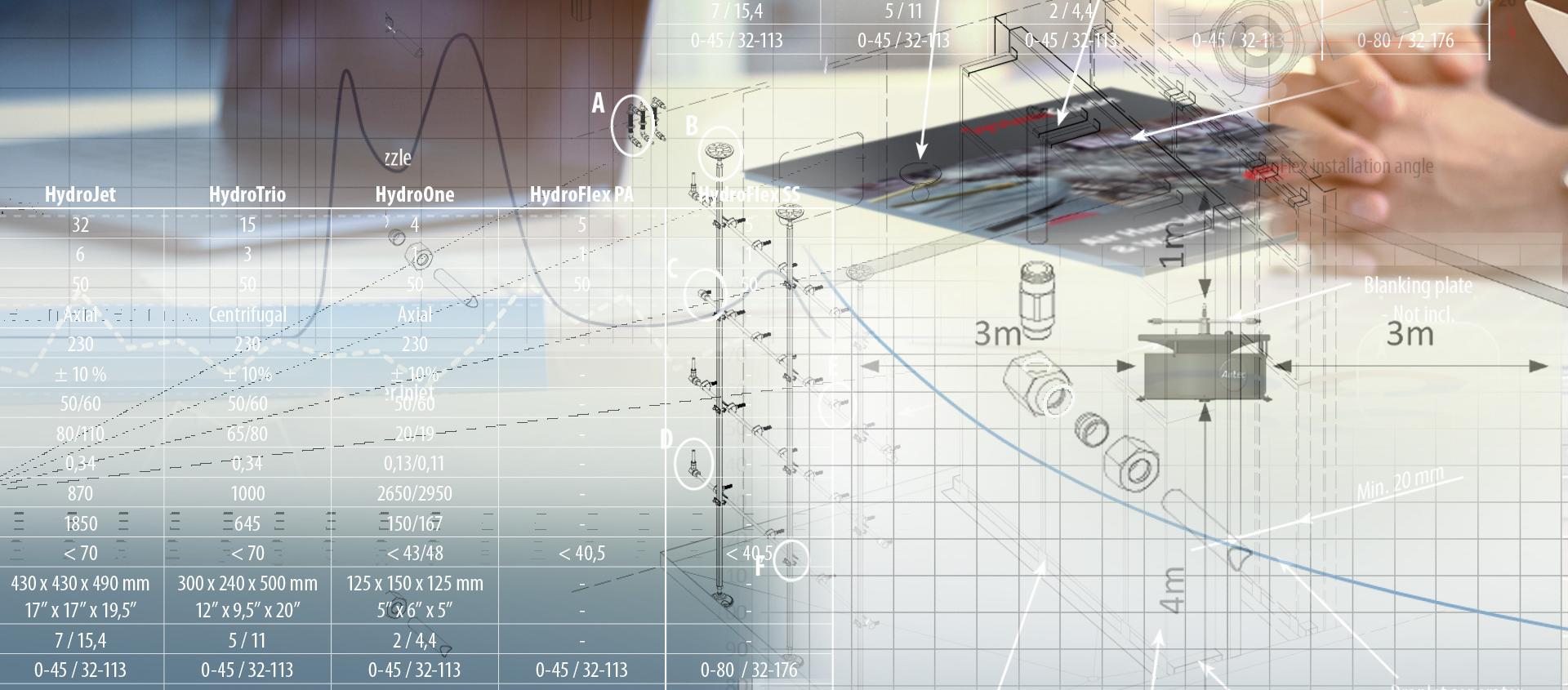 - Airtec®-ilmankostutusjärjestelmän kaikkien järjestelmäkomponenttien taulukot